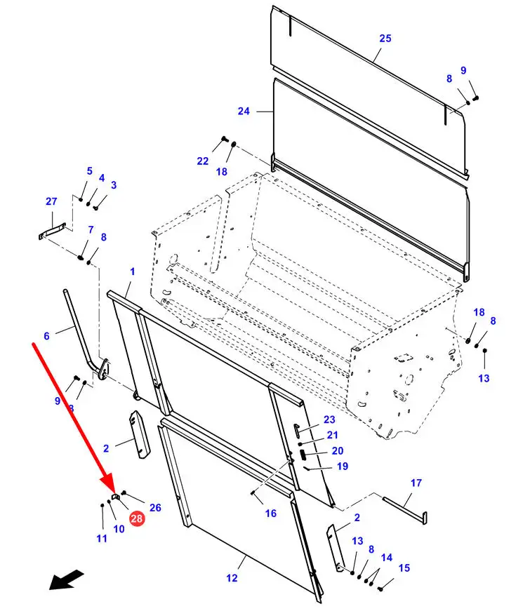 Oryginalne, pochodzące z dekompletacji, mogące nosić ślady użytkowania mocowanie obudowy rozdrabniacza słomy o numerze katalogowym LA322326150, stosowane w kombajnach zbożowych marki Massey Ferguson oraz Fendt.