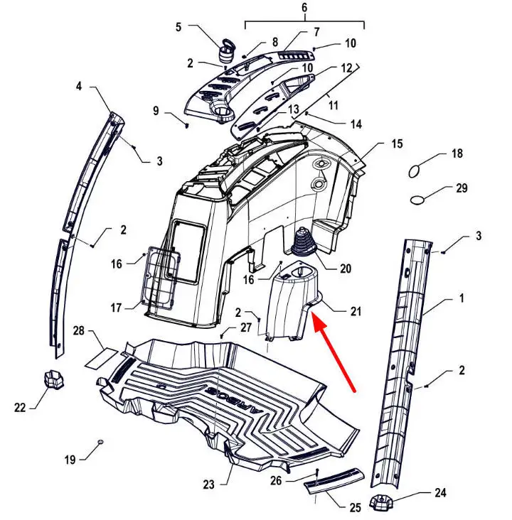 Oryginalna, plastikowa osłona dźwigni zmiany biegów o numerze katalogowym P5S45801235, stosowana w ciągnikach rolniczych marki Arbos.