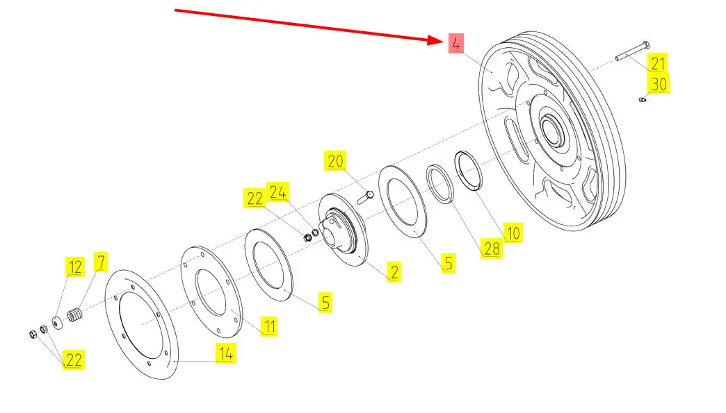 Oryginalne koło pasowe pochodzące z dekompletacji z tuleją mosiężną o numerze katalogowym 100566578, stosowane w kombajnach zbożowych marki Rostselmash.