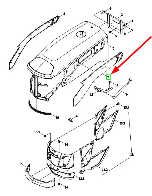 Oryginalny lewy srebrny panel boczny maski o numerze katalogowym TL02471040006a, stosowany w ciągnikach rolniczych marek Arbos oraz Lovol.