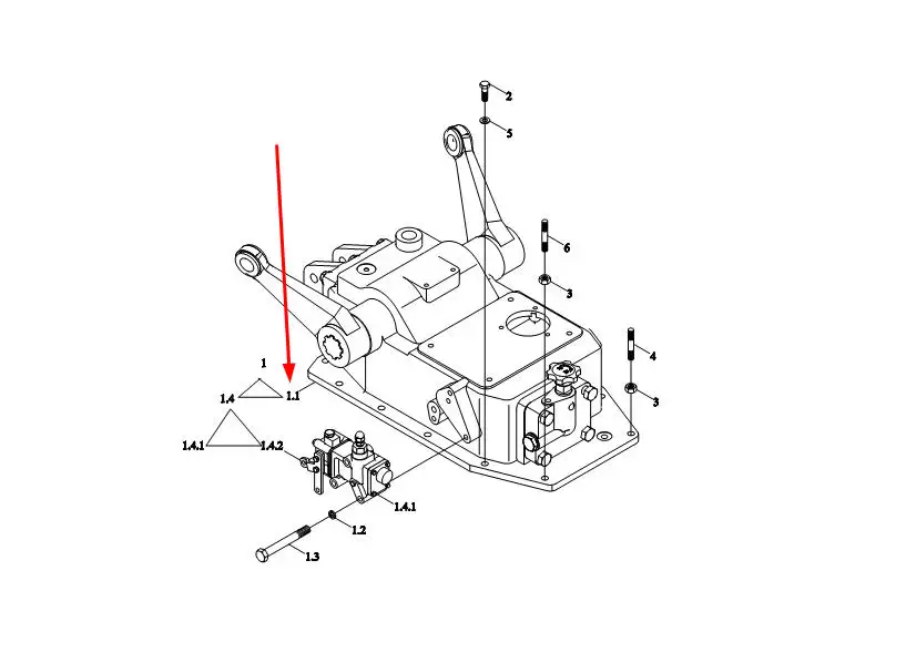 Oryginalny, tylny podnośnik o numerze katalogowym TL02551050001a, stosowany w ciągnikach rolniczych marek Arbos i Lovol.