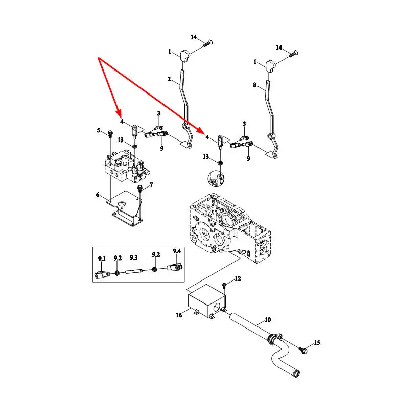 Oryginalne mocowanie cięgna dźwigni sterującej o numerze katalogowym TL02582280057, stosowane w ciągnikach rolniczych marek Arbos i Lovol.