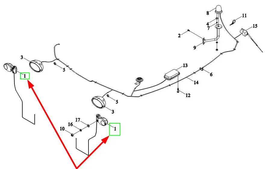 Oryginalna lampa przednia z kierunkowskazem lewa/prawa o numerze katalogowym TS06486010001K, stosowana w ciągnikach rolniczych marek Arbos, Lovol.