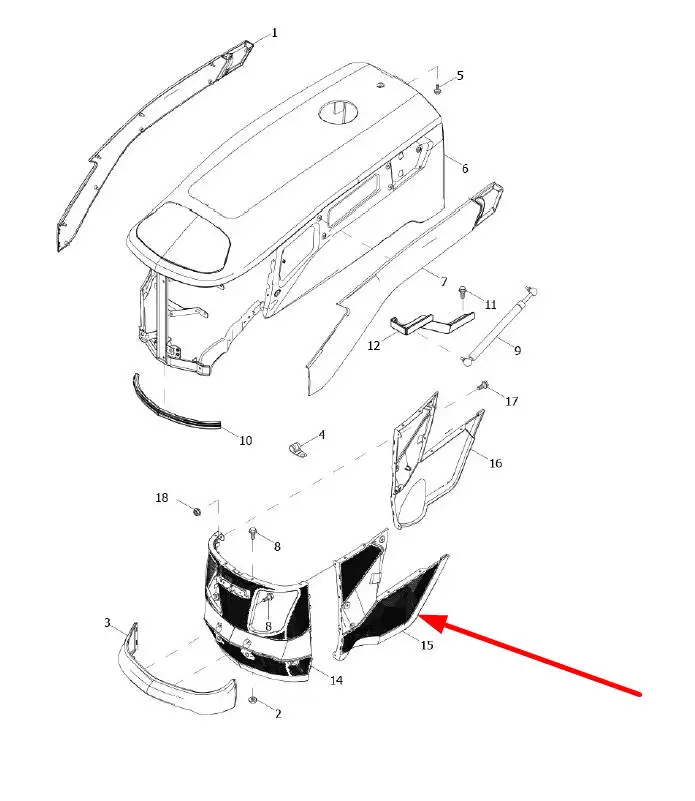 Oryginalna osłona lewa maski silnika, plastikowa o numerze katalogowym L0004617, stosowana w ciągnikach rolniczych marek Arbos oraz Lovol.