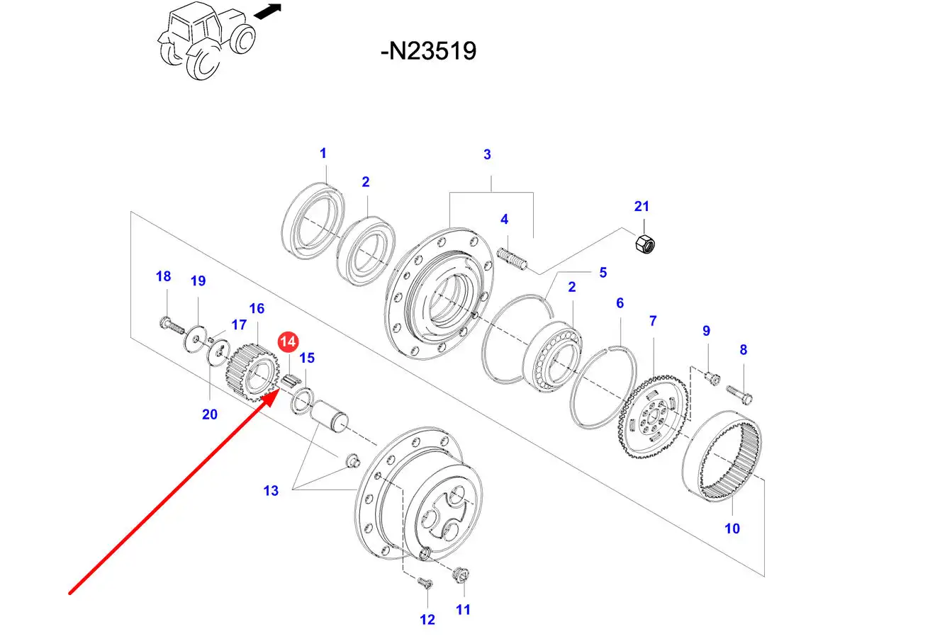 Oryginalna igiełka łożyska zwolnicy osi przedniej o numerze ktalaogowym V34053300, stosowana w ciągnikach rolniczych marki Valtra.