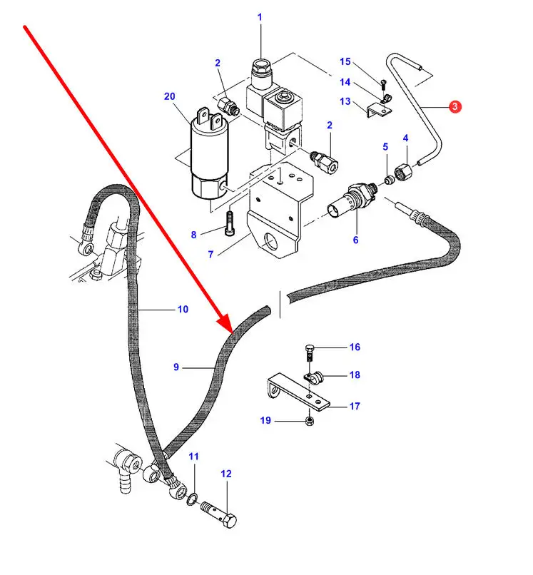 Oryginalny przewód paliwowy układu rozruchowego zimnego silnika o numerze katalogowym V836659668, stosowany w ciągnikach rolniczych marki Massey Ferguson.