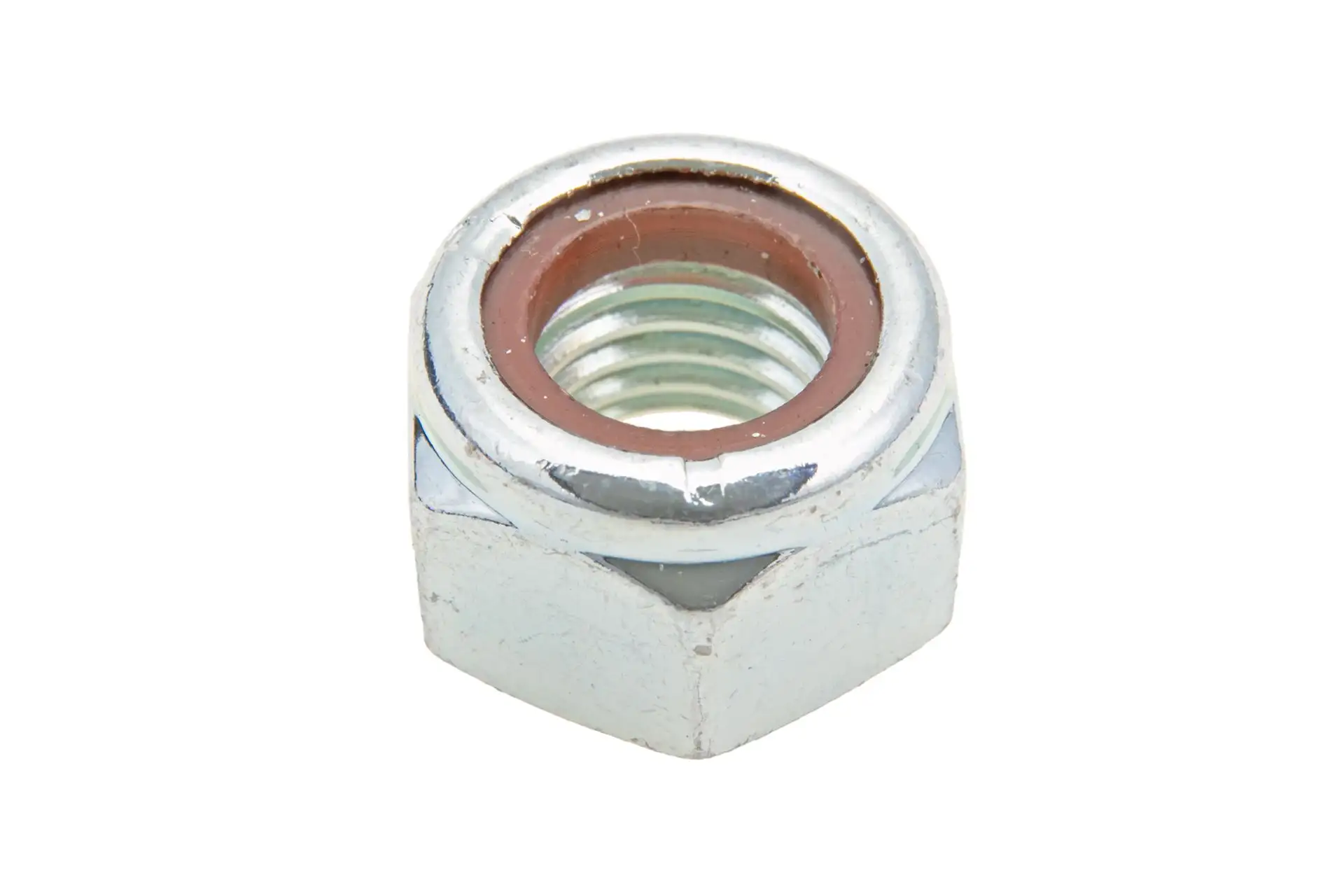 Nakrętka kontrująca o wymiarze M11 i numerze katalogowym VJ338, stosowana w maszynach rolniczych wielu marek.
